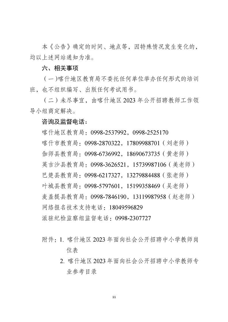 附件1 喀什地區(qū)2023年面向社會(huì)公開(kāi)招聘中小學(xué)教師招聘崗位表