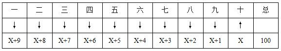 由題目已知,每人分得的冰水?dāng)?shù)都不相同,故可將環(huán)衛(wèi)工人按照分得水的瓶數(shù)由大到小排序(如上圖所示)。依據(jù)解題原則,共有100瓶冰水分給環(huán)衛(wèi)工人,分得最少的環(huán)衛(wèi)工人(也就是第十名)要盡可能大,在其對(duì)應(yīng)排名下標(biāo)上“向上箭頭”,那其余9名環(huán)衛(wèi)工人就要盡可能小,在其對(duì)應(yīng)排名下分別標(biāo)上“向下箭頭”。每名環(huán)衛(wèi)工人分得的冰水?dāng)?shù)互不相等且為整數(shù),而第一至第九名分得的水的最小值取決于最后一名,故設(shè)第十名環(huán)衛(wèi)工人分得X瓶冰水,則第九名要想取到最小值就需要盡可能接近第十名并大于第十名,所以最少也要比第十名多1瓶,故第九名最小值為X+1,以此類推,第八名最小值為X+2,第七名最小值為X+3……,一共有100瓶冰水,由此可列:X+(X+1)+(X+2)+(X+3)+(X+4)+(X+5)+(X+6)+(X+7)+(X+8)+(X+9)=100,即10X+45=100,解得X=5.5,即第十名環(huán)衛(wèi)工人最多是5.5瓶,那么冰水的數(shù)量不能比5.5更多,而瓶數(shù)必為整數(shù),所以需要向下取整為5瓶。因此分得最少的環(huán)衛(wèi)工人至多分得5瓶冰水,則選C項(xiàng)。