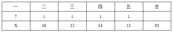 由題目已知,每人得分各不相同,故可將5名學(xué)生按照成績由大到小排序(如上圖所示),此時(shí)要求排名第一的學(xué)生分?jǐn)?shù)最高,則使其他4名同學(xué)成績盡可能的低。此時(shí)在表中標(biāo)上相應(yīng)的箭頭(最高:向上箭頭,最低:向下箭頭)。已知最低為13分,且得分各不相同均為整數(shù),那么其他人要想盡可能的低,則設(shè)第一名為X,則第五、四、三、二名依次應(yīng)為13、14、15、16,共為93分,故有X+16+15+14+13=93,即X+58=93,解得X=35,故最高分最高為35分,選B項(xiàng)。