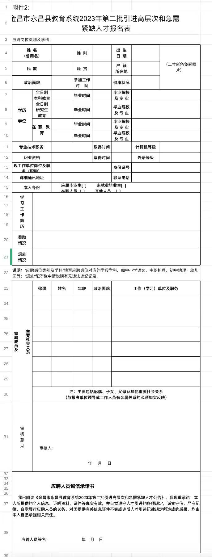 2.金昌市永昌縣教育系統(tǒng)2023年第二批引進(jìn)高層次和急需緊缺人才報(bào)名表