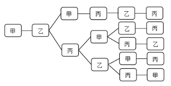 【答案】C【解析】根據(jù)題意需要安排甲乙丙三人在10月1號(hào)到6號(hào)值班,6天中每天安排1人,每人值班2天且不連續(xù)。那么第一步可以先安排1號(hào),甲、乙、丙三人選一人值班,有3種選擇。第二步安排2號(hào),由于每人值班不連續(xù),所以從剩下兩人中選一人,有2種選擇。第三步安排3-6號(hào),安排3號(hào)值班的人可以和1號(hào)值班的人相同,也可以和1號(hào)、2號(hào)值班人員均不同,而3號(hào)值班的人是否和1號(hào)值班人員相同,會(huì)影響后面日期的安排,所以需分類(lèi)討論。假設(shè)1號(hào)安排甲,2號(hào)安排乙(如下圖所示),則3號(hào)安排分兩類(lèi):①安排甲;②安排丙。計(jì)算每一類(lèi)方法數(shù):①安排甲:根據(jù)題干條件,4號(hào)只能安排丙,5號(hào)安排乙,6號(hào)安排丙,有1種情況。②安排丙:4號(hào)可以安排甲或者乙,若4號(hào)安排甲,5號(hào)可以安排乙或者丙,6號(hào)即為剩下一人值班,有2種;同理,若4號(hào)安排乙,5號(hào)可以安排甲或者丙,6號(hào)也是剩下一人值班,有2種,則共有2+2=4種,則第三步共有1+4=5種。最終分步相乘3×2×5=30種,正確答案為C。