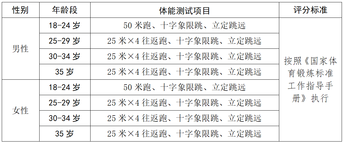 4.體能測試項(xiàng)目及評分標(biāo)準(zhǔn):