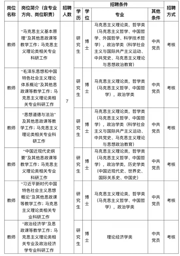 為了落實(shí)國家關(guān)于進(jìn)一步加強(qiáng)馬克思主義學(xué)院建設(shè)的要求,東北財(cái)經(jīng)大學(xué)馬克思主義學(xué)院2023年擬招聘7名思想政治理論課教師,擬招聘人員的計(jì)劃信息如下: