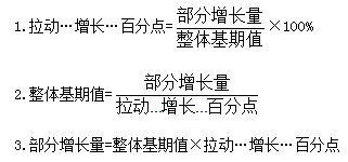 在以上的講解中我們發(fā)現(xiàn)公式中出現(xiàn)了部分與整體,那么我們?nèi)绾稳^(qū)分誰是部分、誰是整體呢?有個小竅門就是將問題當(dāng)中“拉動”這一關(guān)鍵詞找出來,根據(jù)定義我們不難得知是部分拉動整體增長,所以部分應(yīng)該位于“拉動”的前面,而整體應(yīng)該位于“拉動”的后面,明確部分與整體之后只需要找出相關(guān)量代入公式求解即可。