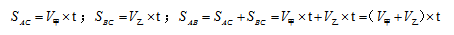 如圖:甲乙二人分別同時(shí)從A、B出發(fā)前往C地,最終甲乙兩人同時(shí)到達(dá)C地,我們可知: