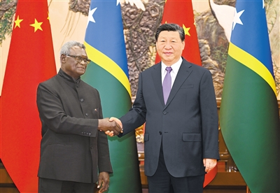 習近平指出,中國和所羅門群島是彼此值得信賴的好朋友、可以依靠的好兄弟。建交以來,兩國友好合作后來居上,走在了中國同太平洋島國關(guān)系前列,成為不同大小國家和發(fā)展中國家團結(jié)合作、攜手發(fā)展的典范。事實證明,中所建交順應時代潮流,契合國際大勢,符合兩國人民根本利益,是正確選擇。中方愿同所方加強戰(zhàn)略溝通,深化各領(lǐng)域合作,推動兩國全面戰(zhàn)略伙伴關(guān)系行穩(wěn)致遠、好上加好,更好造福兩國人民。