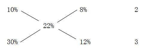 ,故符合分子分母具有可加性的比值混合規(guī)律,因此,我們可以采用十字交叉來(lái)解決溶液混合問(wèn)題。例題如下: