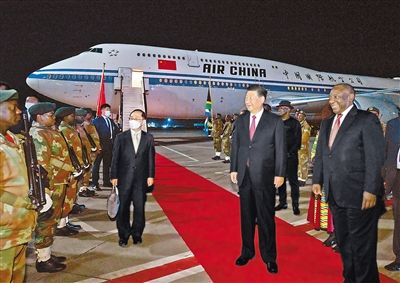 習(xí)近平抵達約翰內(nèi)斯堡出席金磚國家領(lǐng)導(dǎo)人第十五次會晤并對南非進行國事訪問