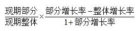 ×(部分增長率-整體增長率)<1×(部分增長率-整體增長率)的結(jié)果,若比重下降,則比重變化量式子根據(jù)同樣道理則變?yōu)?/span>