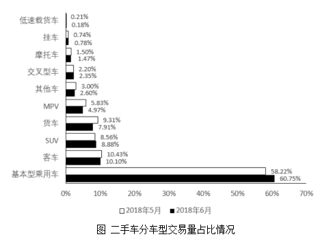 問題:根據(jù)車型分類,2018年6月各類車型二手車交易量環(huán)比增速小于全國的有:( )