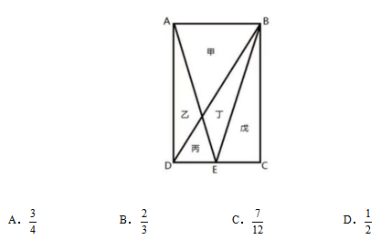 例2:一塊種植花卉的矩形土地如圖所示,AD邊長是AB的2倍,E是CD的中點,甲、乙、丙、丁、戊區(qū)域分別種植白花、紅花、黃花、紫花、白花。則種植白花的面積占矩形土地面積的:( )