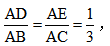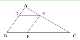 ,則△ADE∽△ABC,且相似比為1:3,則△ADE與△ABC面積比為1:9;同理,則△CEF∽△CAB,相似比為2:3,△CEF與△CAB面積之比為4:9。設(shè)△ADE的面積為1,那么△ABC的面積為9,△CEF的面積為4,四邊形EDEF面積為9-1-4=4,△ADE、△CEF、四邊形BDEF的面積之比為1:4:4,故本題選C。