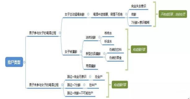 認(rèn)識(shí)且自醉型。若女子事前與男子認(rèn)識(shí),女子主動(dòng)要求喝酒(心情不好、自吹酒量大或者找刺激、耍大姐大等),中途還主動(dòng)親吻男性或者男性調(diào)情、調(diào)戲不予反抗,女子自己把自己灌醉(不省人事或者7分醉),該女子被撿尸,事后酒醒控告男子涉嫌強(qiáng)奸,則應(yīng)當(dāng)綜合考量事前、事中、事后女子的行為事實(shí),審慎認(rèn)定是否“違背婦女意志”,認(rèn)為此類行為只要有證據(jù)證明女子系自愿買醉,事前對(duì)于自己將陷入“虎口”有明確的認(rèn)知卻不自我保護(hù)——希望或放任自我,此類“撿尸”應(yīng)當(dāng)依法不構(gòu)成犯罪,考慮到此類行為的社會(huì)危害性及道德評(píng)價(jià)之規(guī)制,可以給予治安管理處罰。