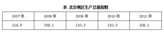 問題:2007-2011年,北京地區(qū)生產(chǎn)總值同比增速最快的是哪年?增速是多少?