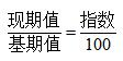 以基期值為100,按照現(xiàn)期值和基期值的比例關(guān)系進(jìn)行計算,所得結(jié)果即為指數(shù)。
