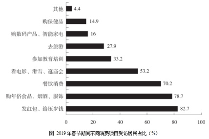 2019年春節(jié)期間有“餐飲消費(fèi)”的受訪居民中,一定有人:( )