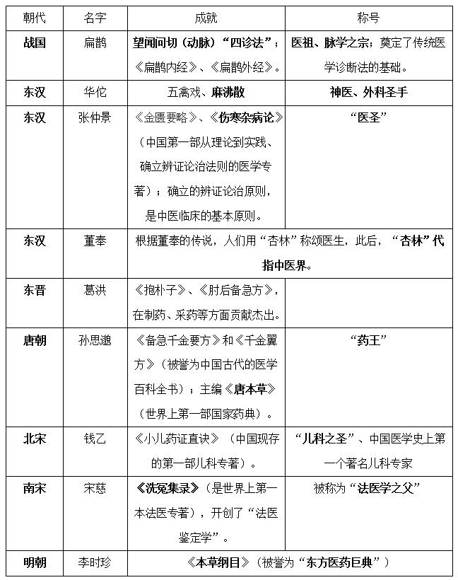 在行測(cè)常識(shí)判斷考試中,對(duì)于人文歷史的考查是必不可少的,其中對(duì)中國(guó)古代的名醫(yī)及其成就的考查是經(jīng)常涉及的內(nèi)容,為了幫助各位考生更好地學(xué)習(xí)和掌握這一部分的知識(shí),政華公考為大家精心整理了這個(gè)表格,助力各位考生備考。