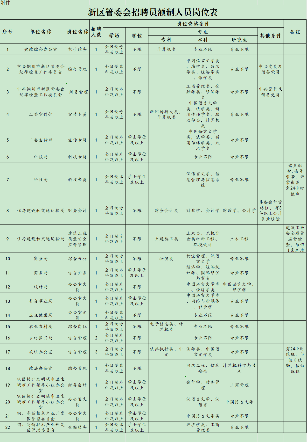 附件:新區(qū)管委會(huì)招聘員額制人員崗位表