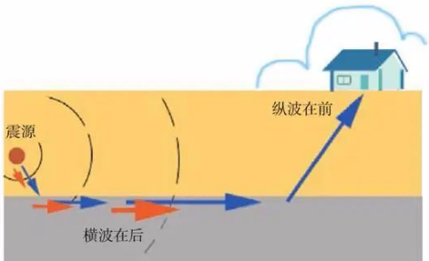 振動(dòng)方向與傳播方向垂直的波為橫波(S波),其傳播速度為3.2--4km/S。來(lái)自地下的橫波能引起地面的水平晃動(dòng)。所以地震發(fā)生時(shí)先上下顛簸,十幾秒后再左右晃動(dòng)。