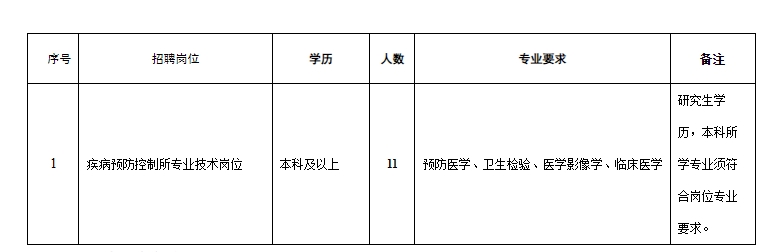 疾病預防控制所專業(yè)技術崗位,醫(yī)學影像、臨床醫(yī)療專業(yè)11人。