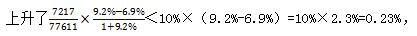 即上升了不到0.23個百分點。只有A項符合。故本題選A。