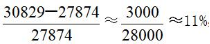 【答案】C【解析】根據(jù)材料第三段,2011年參保職工21565萬人,比上年末增加2163萬人,年末全國參加城鎮(zhèn)基本養(yǎng)老保險人數(shù)為28391萬人,比上年末增加2684萬人,所求占比為
