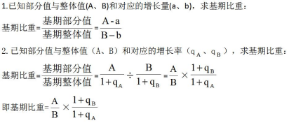 根據(jù)公式,我們可以清晰的判斷,如果部分增長率>整體增長率,則比重增長量為正,即比重上升,反之亦成立。