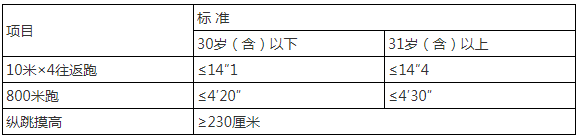 體能測評按照《關(guān)于印發(fā)公安機關(guān)錄用人民警察體能測評項目和標(biāo)準(zhǔn)(暫行)的通知》(人社部發(fā)〔2011〕48號)和《關(guān)于轉(zhuǎn)發(fā)中組部公務(wù)員二局〈關(guān)于同意調(diào)整公安機關(guān)錄用人民警察體能測評有關(guān)項目測評次數(shù)的復(fù)函〉的通知》(公政治傳發(fā)〔2020〕2號)執(zhí)行,體能測評以現(xiàn)場測評結(jié)果為準(zhǔn),不另行復(fù)測。有一項不合格的,體能測評不合格。體能測評不合格的,應(yīng)聘人員不得參加面試和專業(yè)能力測試。具體條件如下: