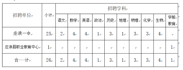 莊浪縣招聘2022、2023、2024屆教育部直屬六所重點(diǎn)師范院校公費(fèi)師范畢業(yè)生26名。其中莊浪一中25名,莊浪縣職業(yè)教育中心1名,招聘崗位信息見下表。