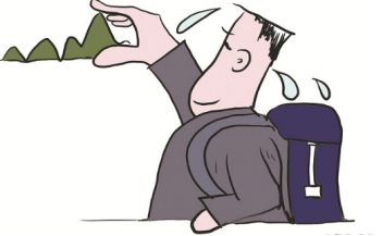 【例題】漫畫(huà)中,一位背著包的人,滿(mǎn)頭大汗,用手丈量著遠(yuǎn)方的高山,從他的角度高山看著很小,一只手就能比劃過(guò)來(lái)。請(qǐng)你根據(jù)這幅漫畫(huà)進(jìn)行闡述。