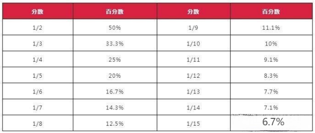 眾所周知,資料分析材料中所給數(shù)據(jù)除了常規(guī)數(shù)值之外,其他都以百分?jǐn)?shù)的形式呈現(xiàn),而如果大家看到這些百分?jǐn)?shù)能快速想到對(duì)應(yīng)的特殊分?jǐn)?shù),例如看到14.28%,能快速聯(lián)想到接近七分之一,列式后計(jì)算就會(huì)特別簡(jiǎn)單。