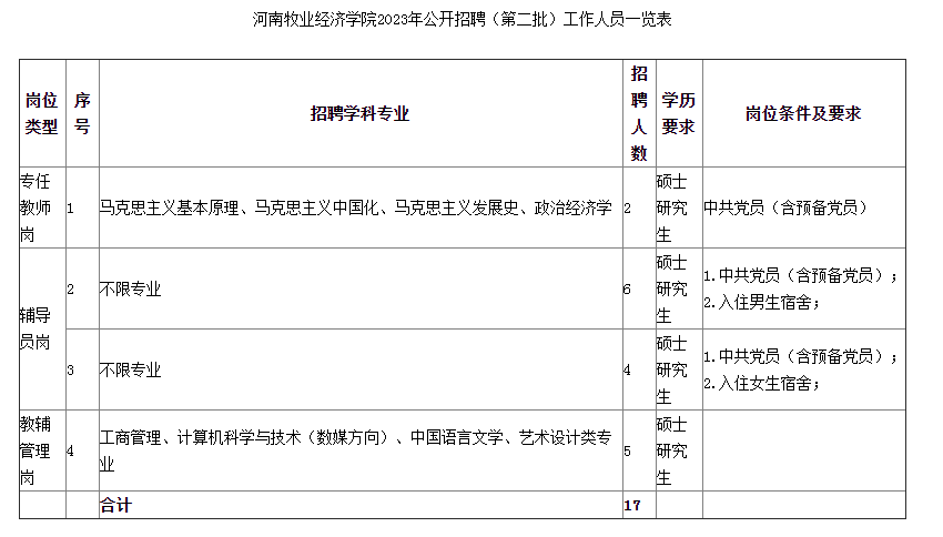 詳見(jiàn)《河南牧業(yè)經(jīng)濟(jì)學(xué)院2023年公開(kāi)招聘(第二批)工作人員一覽表》。
