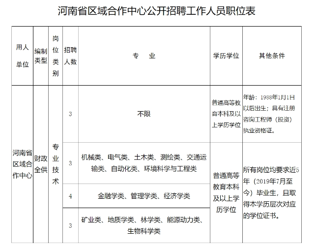 2.河南省區(qū)域合作中心招聘專業(yè)技術(shù)崗位工作人員13名。