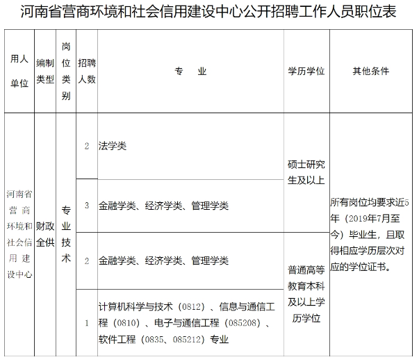 1.河南省營商環(huán)境和社會信用建設(shè)中心招聘專業(yè)技術(shù)崗位工作人員8名。