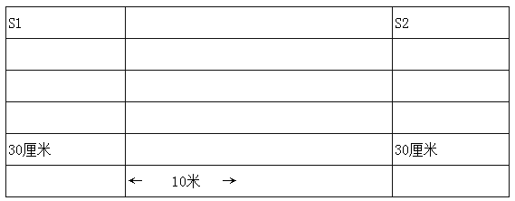 測(cè)試方法為:受測(cè)者用站立式起跑,聽到發(fā)令后從S1線外起跑,當(dāng)跑到S2線前面,用一只手拿起一木塊隨即往回跑,跑到S1線前時(shí)交換木塊,再跑回S2交換另一木塊,最后持木塊沖出S1線,記錄跑完全程的時(shí)間。記錄以秒為單位,取一位小數(shù),第二位小數(shù)非“0”時(shí)則進(jìn)1。