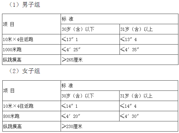 如在體能測評(píng)工作組織實(shí)施前,國家有關(guān)部門出臺(tái)新的體能測評(píng)標(biāo)準(zhǔn),將按照國家有關(guān)部門最新標(biāo)準(zhǔn)執(zhí)行。