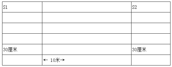 受測者用站立式起跑,聽到發(fā)令后從S1線外起跑,當(dāng)跑到S2線前面,用一只手拿起一木塊隨即往回跑,跑到S1線前時(shí)交換木塊,再跑回S2交換另一木塊,最后持木塊沖出S1線,記錄跑完全程的時(shí)間。記錄以秒為單位,取一位小數(shù),第二位小數(shù)非“0”時(shí)則進(jìn)1。注意事項(xiàng):當(dāng)受測者取放木塊時(shí),腳不要越過S1和S2線;10米×4往返跑項(xiàng)目測評(píng)次數(shù)不超過2次。