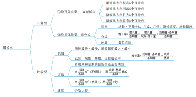 1.識別:增長+比例(相對量,比如百分數(shù)、倍數(shù)、成數(shù)),又名:增速、增幅、增值率。