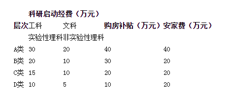 與學(xué)校簽訂服務(wù)期協(xié)議后,按照評估確定的等次一次性發(fā)放安家費(fèi)、購房補(bǔ)貼30-80萬。到校后根據(jù)研究方向可申報校內(nèi)博士專項科研啟動經(jīng)費(fèi),經(jīng)學(xué)校審批后,可給予5-30萬的科研啟動費(fèi)支持(按照校內(nèi)考核辦法執(zhí)行)。