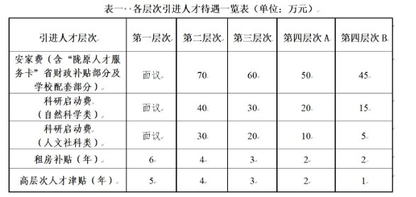 ?。ㄒ唬└鶕?jù)《蘭州工業(yè)學(xué)院高層次人才引進與管理辦法(試行)》(蘭工院〔2022〕95號),全職引進高層次人才分為四個層次,具體待遇見表一: