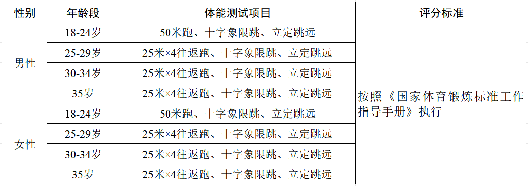 3.體能測試項目及評分標準: