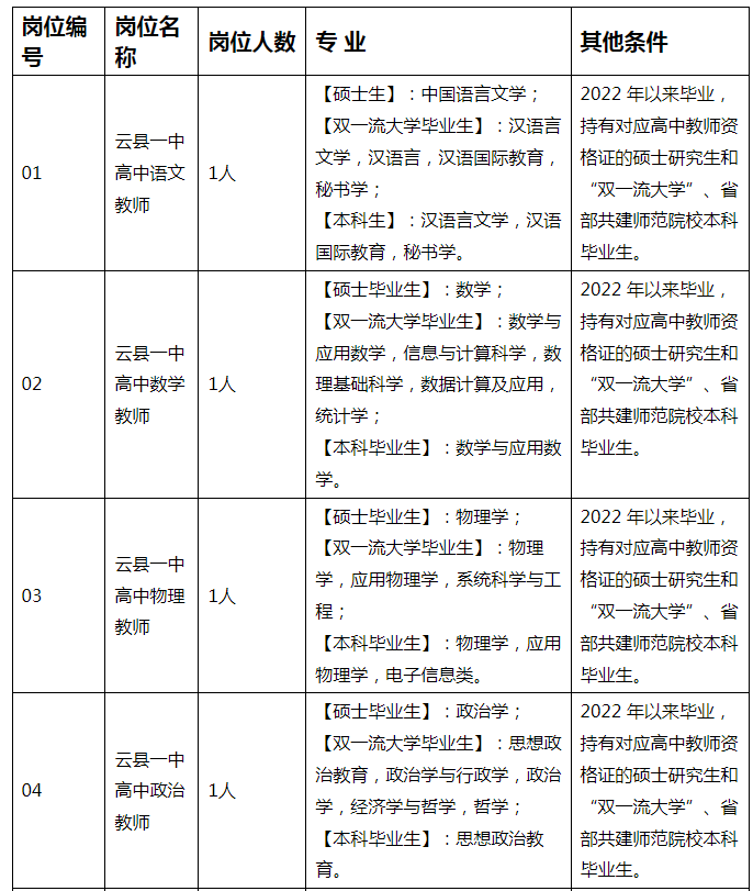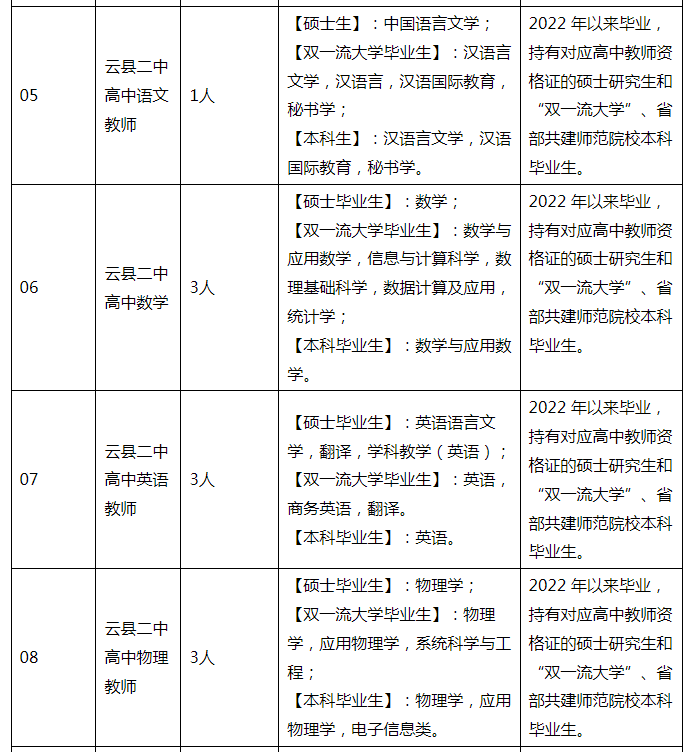 臨滄市云縣2024年普通高中教育急需緊缺專業(yè)人才引進公告