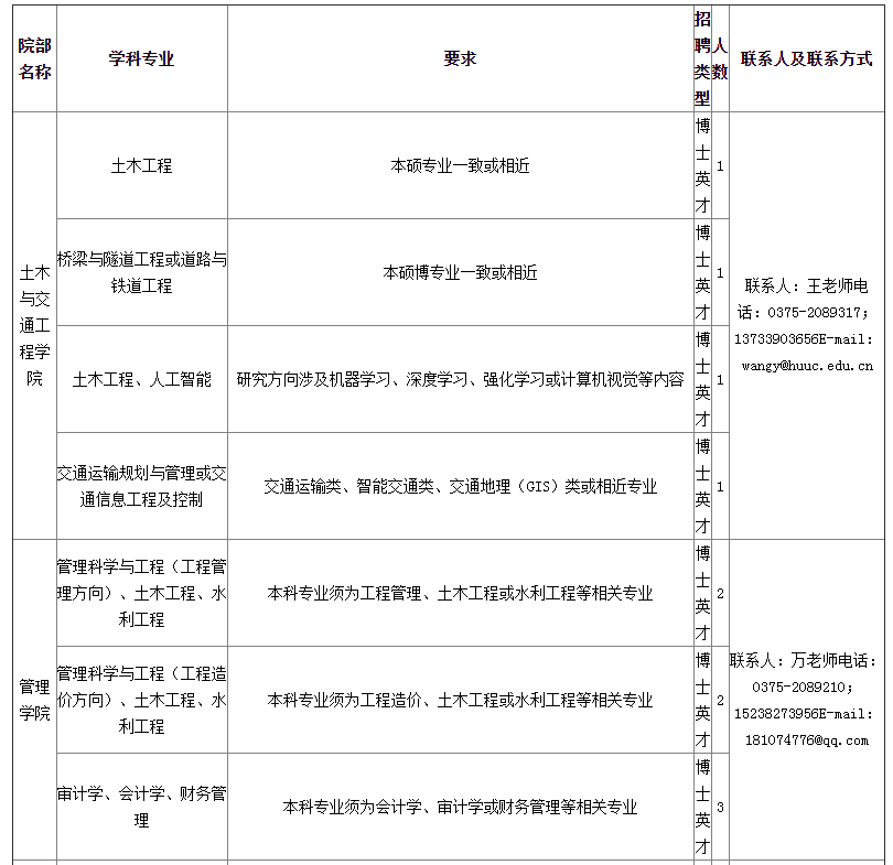博士英才需具有崗位所需的學(xué)歷、學(xué)位、專業(yè)及技能,教學(xué)、科研水平符合學(xué)校有關(guān)規(guī)定,分為A、B、C四類,詳詢應(yīng)聘學(xué)院。