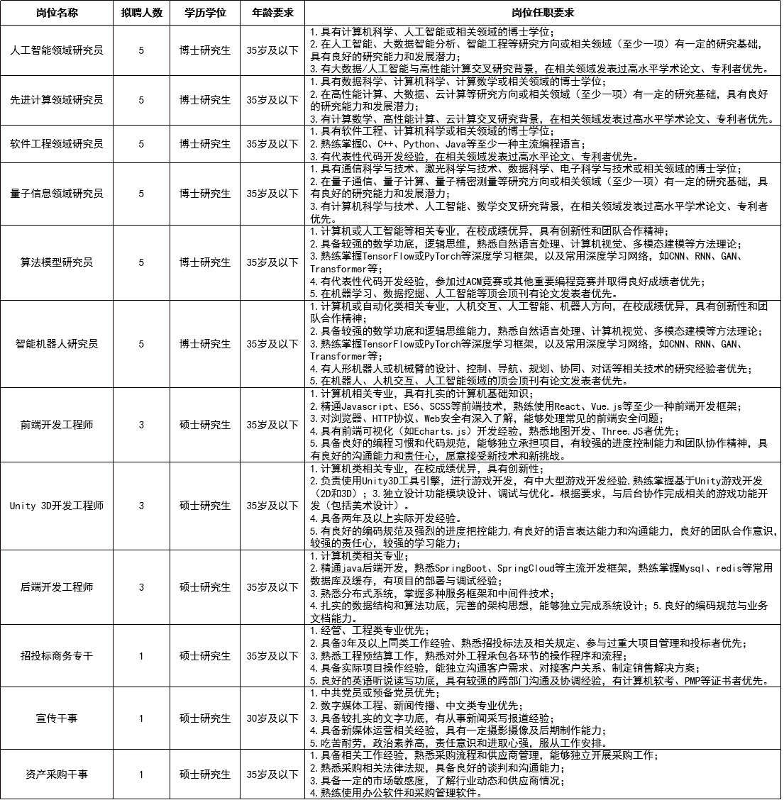 此次招聘崗位12個、計劃招聘人員42人。