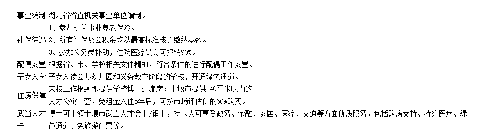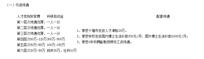 注:十堰市人才待遇以十堰市人才政策為準(zhǔn);來(lái)校面試可按學(xué)校標(biāo)準(zhǔn)報(bào)銷(xiāo)往返交通費(fèi)和住宿費(fèi)。