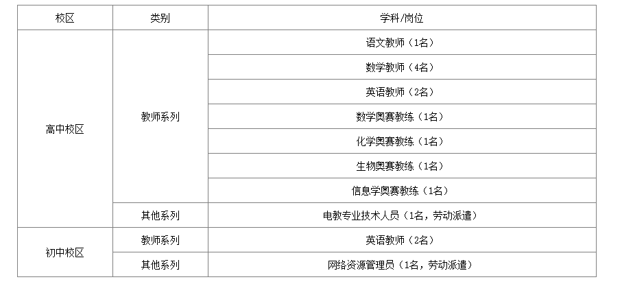 1.語文、數(shù)學(xué)、英語學(xué)科教師:需具備對(duì)應(yīng)學(xué)科碩士及以上學(xué)歷(特別優(yōu)秀的本科生也可考慮);
