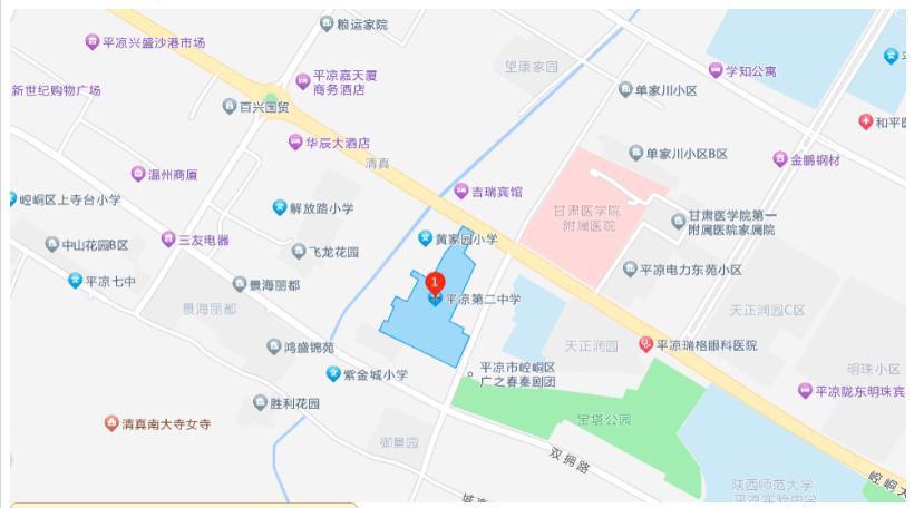 2.平?jīng)鑫逯锌键c,地址:平?jīng)鍪嗅轻紖^(qū)西郊街道崆峒大道西路754號,公交線路:1路、9路、13路、39路。