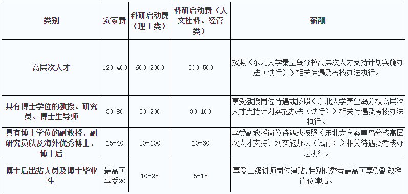 4.《東北大學(xué)秦皇島分校高層次人才支持計(jì)劃實(shí)施辦法(試行)》具體政策請咨詢?nèi)耸绿帯?/p>