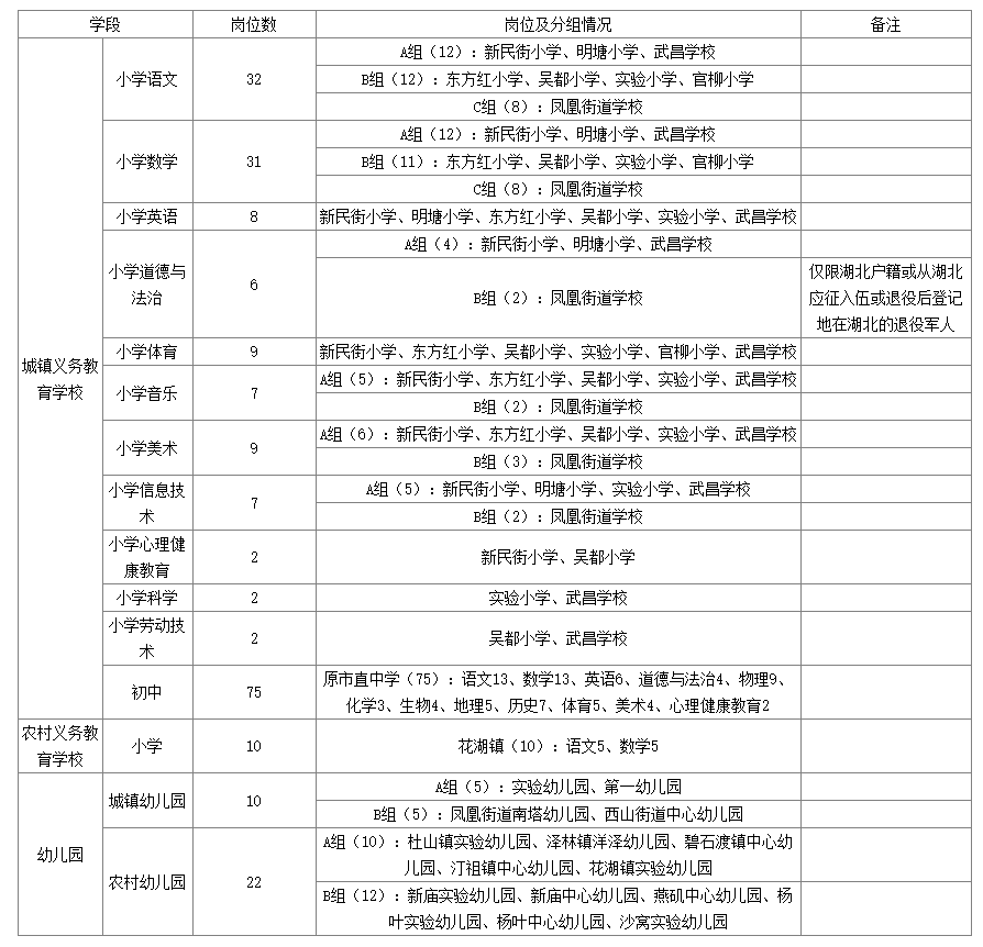 備注:為了體現(xiàn)招聘教師公平、公正原則,確保規(guī)定的時間內(nèi)完成同一崗位面試工作,區(qū)分原市直學(xué)校和街道學(xué)校,將城鎮(zhèn)義務(wù)教育學(xué)校部分小學(xué)崗位和幼兒園崗位進行了分組,請考生在報名時注意崗位分組情況,按需報崗。