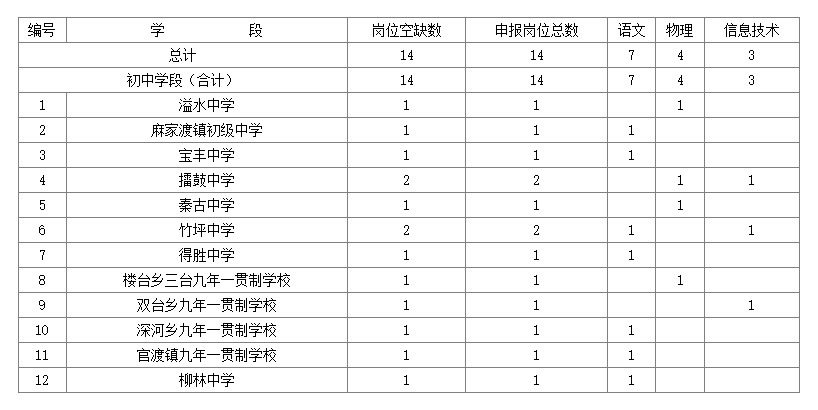 ?。ㄒ唬┬聶C(jī)制初中教師崗位(14名)